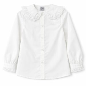 قميص انيق باللون السكري بتصميم انيق و بسيط , مزود بياقة دائرية مزخرفة بتطريز ناعم واكمام طويلة مع اساور مطرزة لإطلالة مرتبة, مصنوعة من قماش ناعم و مريح و مناسبة للاستخدام اليومي و المناسبات المدرسية و الرسمية.